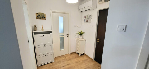 2-room apartment, separate layout, freshly renovated, fully furnished and equipped, everything modern, with modern finishes (thermal insulation windows, tiles, faience, hardwood floor), 1 enclosed balcony with access from the living room and kitchen, 1 storage room.