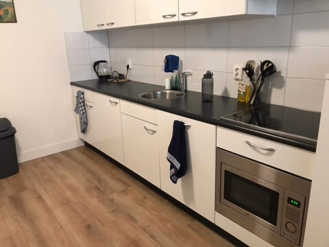 De moderne keuken is volledig uitgerust met een inductiekookplaat, koelkast, oven/magnetron en afzuigkap. De badkamer is keurig afgewerkt en van alle gemakken voorzien. Daarnaast zijn er twee ruime slaapkamers met veel lichtinval aanwezig. Daarnaast is er een tuin aanwezig, waar je zomers lekker kunt genieten van de zon. Tot slot is er een gedeelde fietsberging.