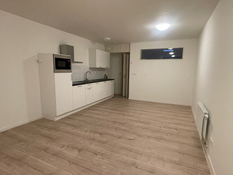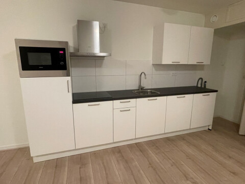 Bij binnenkomst kom je in de lichte woonkamer met een open keuken, compleet uitgerust met een inductiekookplaat, koelkast, combi-oven/magnetron en afzuigkap. Aan de achterzijde bevindt zich een ruime slaapkamer. Daarnaast beschikt de badkamer over een toilet, douche en wastafel.