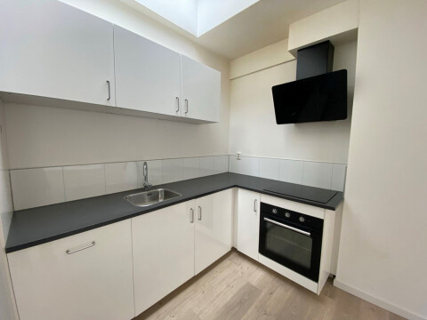 Bij binnenkomst van het appartement stap je direct de lichte, ruime woonkamer binnen, die is voorzien van een open keuken. Deze keuken is van alle moderne gemakken voorzien, waaronder een inductiekookplaat, koelkast, oven en vaatwasser. Daarnaast is er een slaapkamer. Het appartement beschikt verder over een apart toilet en een praktische badkamer, uitgerust met een douche en wastafel.
