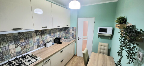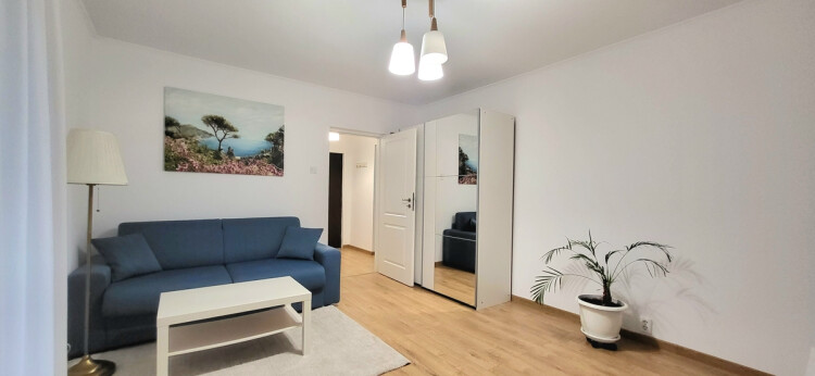 2-room apartment, separate layout, freshly renovated, fully furnished and equipped, everything modern, with modern finishes (thermal insulation windows, tiles, faience, hardwood floor), 1 enclosed balcony with access from the living room and kitchen, 1 storage room.