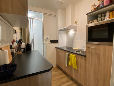 Bij binnenkomst in de woning kom je eerst in de hal, die toegang geeft tot de gemeenschappelijke ruimtes. De woning heeft een goed onderhouden, gemeenschappelijke keuken die van alle gemakken is voorzien. De woning beschikt verder over een gezamenlijk toilet en een nette douche. Er zijn tevens twee aparte slaapkamers aanwezig.