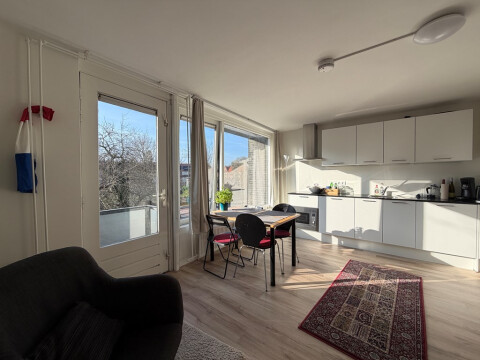 Via de entree betreed je het appartement van 33,87m2 op de eerste verdieping. Bij binnenkomst komt je terecht in de woonkamer met open keuken. De keuken is modern uitgevoerd en voorzien van een inductiekookplaat, koelkast, vaatwasser en een combinatie oven-magnetron. De badkamer beschikt over een douche, toilet en wastafelmeubel. Tot slot is er een aparte slaapkamer aanwezig van 9,17m2.