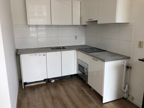 het appartement beschikt over een ruime woonkamer met open keuken. De keuken is van vele gemakken is voorzien zoals een inductiekookplaat, koelkast, combinatie oven-magnetron en een vaatwasser. Daarnaast in er een nette badkamer aanwezig met douche, wastafel en toilet.
