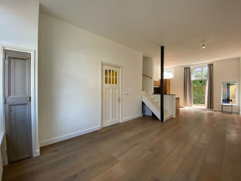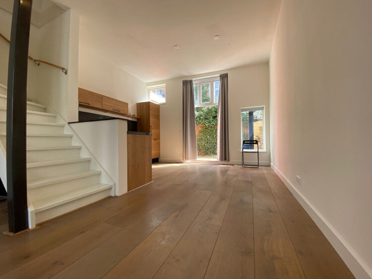 De woning bevindt zich op de begane grond en heeft een oppervlakte van circa 63 m². De lichte woonkamer beschikt over een open keuken, die is voorzien van een inductiekookplaat, afzuiginstallatie, vaatwasser, koelkast en oven. De badkamer is uitgerust met een douche en wastafel. Er is een apart toilet met eigen wastafel. Op de eerste verdieping bevinden zich twee slaapkamers. Tot slot beschikt de woning over een achtertuin van circa 12 m².