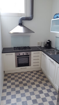 - Ruime keuken (kitchen; 15m2) met 5-pitsgasstoestel, afzuigkap, oven, vaatwasser, koel/vries-combi en veel bergruimte.