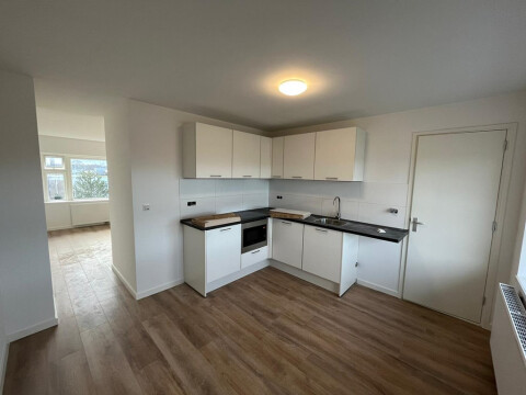 Bij binnenkomst in de woning kom je eerst in de hal, die toegang geeft tot de woonkamer met open keuken. De open keuken is uitgerust met moderne inbouwapparatuur, zoals een inductiekookplaat, oven en koelkast. De woning beschikt verder over een twee aparte slaapkamers van beide ca 5 m2. Ook is de badkamer compleet gerenoveerd.
