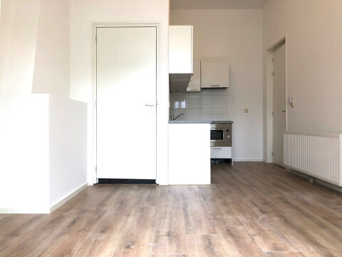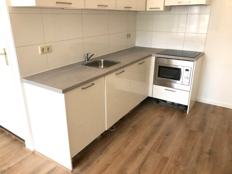 het appartement, van circa 30 m2, beschikt over een woonkamer met open keuken. De keuken is van vele gemakken is voorzien zoals een inductiekookplaat, koelkast, combinatie oven-magnetron en een vaatwasser. Er is een kleine aparte slaapkamer aanwezig. Daarnaast in er een nette badkamer aanwezig met douche, wastafel en toilet.
