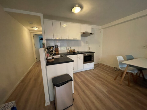 Bij binnenkomst kom je in de lichte woonkamer met een open keuken, compleet uitgerust met een inductiekookplaat, koelkast, combi-oven/magnetron en afzuigkap. Daarnaast beschikt de badkamer over een toilet, douche en wastafel. Tot slot is er een aparte slaapkamer en een tuin aanwezig